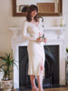 Taking cue from the style worn by gorgeous Léa Seydoux in the 007 franchise 'No Time to Die', our Ambre dress will instantly transform you into a Bond girl. Rib-knitted from semi-sheer wool for a close fit, the sensual yet elegant piece contours your body beautifully before hitting just below the knee. The pearlescent button fastenings through the front create a thigh-grazing slit that reveals a flash of skin as you walk.